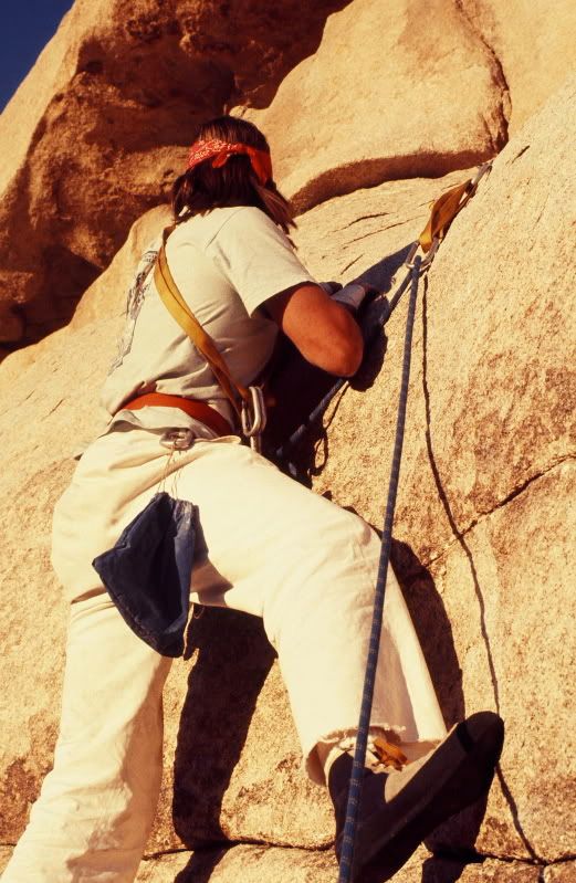 Great shots! I was just in the local Sherwin-Williams paint store and they're selling painters pants for $16. I'm serious thinking about getting a pair for climbing. I used to love those things and have 70's pix of me in them and wearing a Hot Henry Barber cap while struggling on some Gunks 5.6. I should scan those images... or maybe not :) I did have a pair of knickers and high socks, too. Fortunately, no one ever recorded me wearing that fashion on Kodachrome or Polaroid.