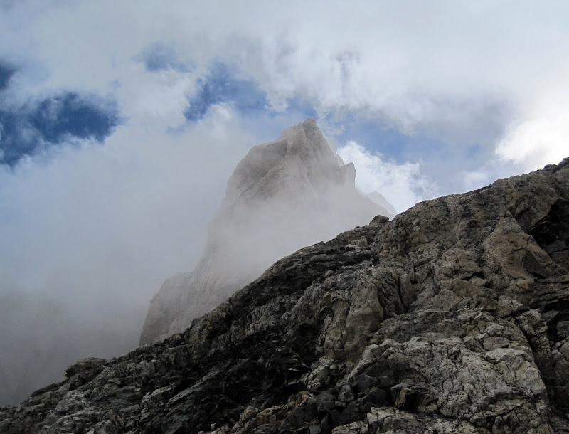 As we rounded the corner we were taken back by the sudden expansive views of Upper Valhalla Canyon, with Mt. Owen and it's long Serendipity Arete as well as the Grand Teton and it's rugged Grandstand towering up amidst the swirling clouds.