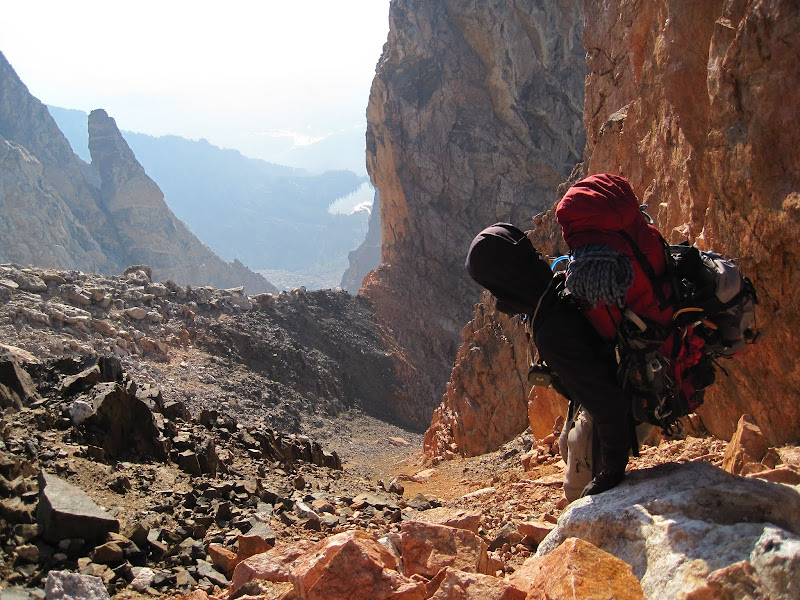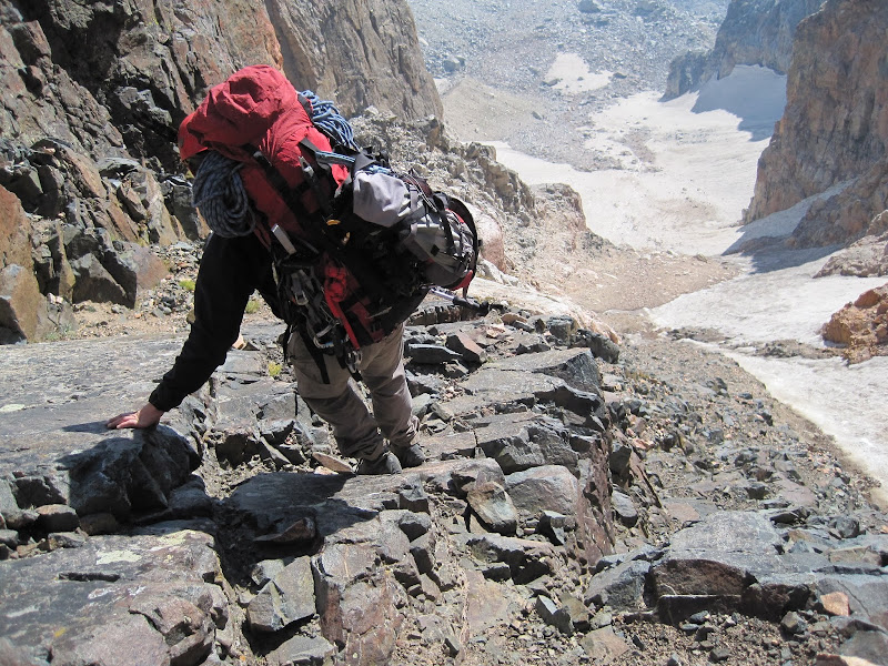 Really the crux of the routefinding was picking the best line down to stay on the least loose of the junky rock. Still, this rock wasn't nearly as bad as the rock on the Valhalla Traverse.