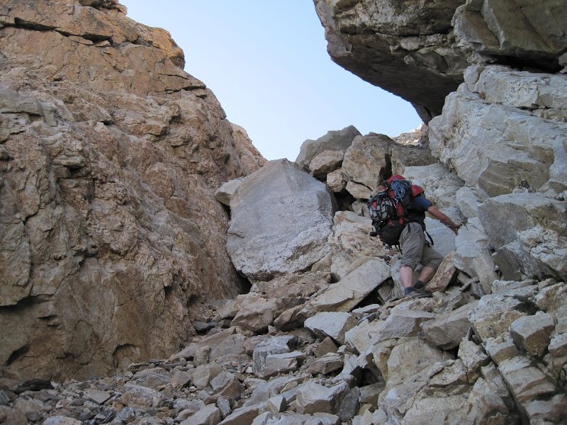 Descending the +1,000' crap chute that is called the Black Dike Couloir. I think this is better when covered in snow . . .
